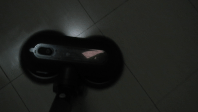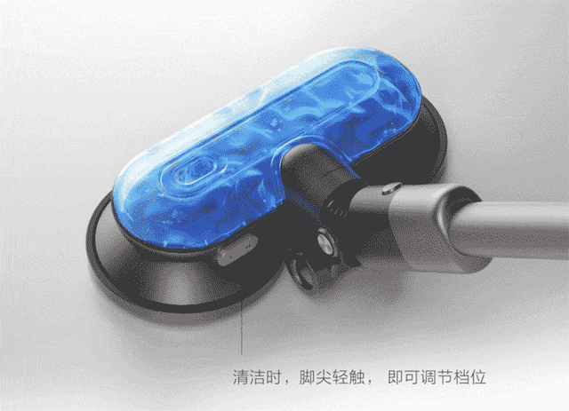 ▲双旋转电动擦地刷同样配有LED灯,我把厨房灯调最暗,擦地刷便能自动亮灯,帮助我们消灭地板上的污迹。
