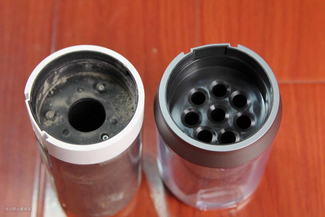 ▲卸下尘杯可以看到主机连接处两者有所不同,原因便是尘杯的不同!