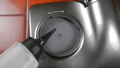 ▲当我们需要拖洗地面时,用所配的煮水瓶将水注入孔中就可以了。