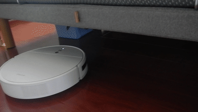▲扫地机器人轮子抬得比较高,在自重下会有一定的下压,但是整体过障碍能力优于前几年的机型,实际越障能力略高于官方标称的2cm。