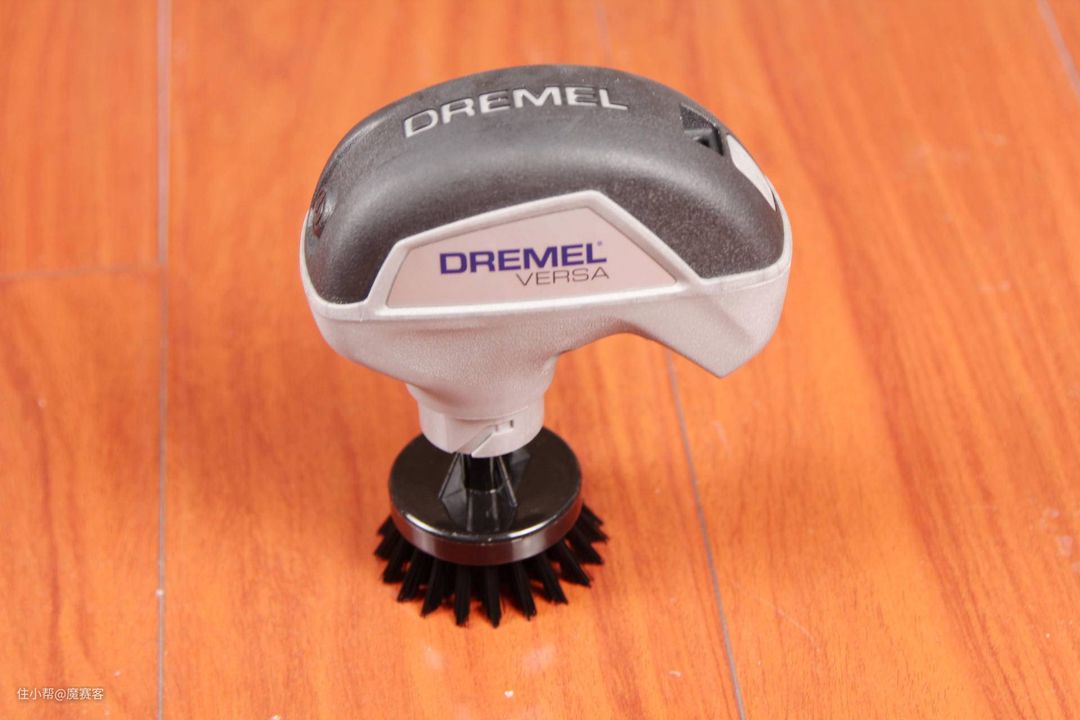 ▲使用刷头时,只要拧紧即可,黑色毛刷适合清洁轮毂,但是我意外发现它清洁地砖缝隙有奇效。