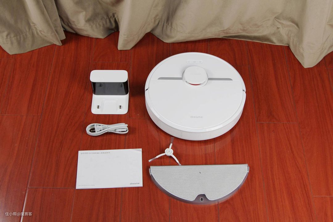 ▲灵图D9有拖地模块、拖布、说明书、充电底座、机器人本体。