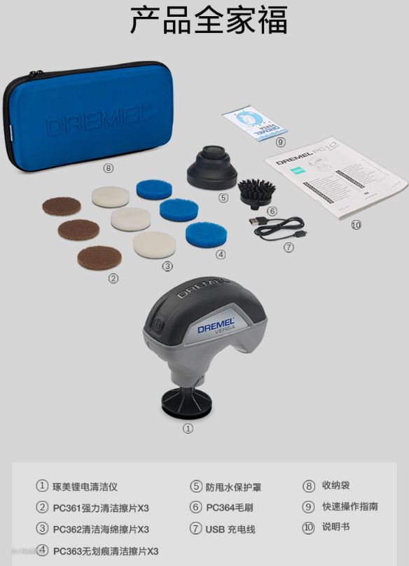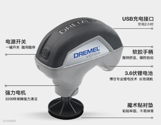 ▲清洁仪用的是锂电池,东西很小仅120-135mm,重量也才452g,转速却能高达2200转/分钟。