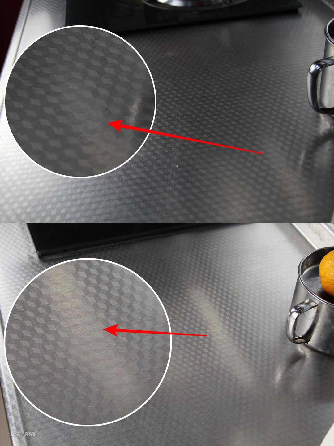 ▲清洁后的灶台锃亮发光。