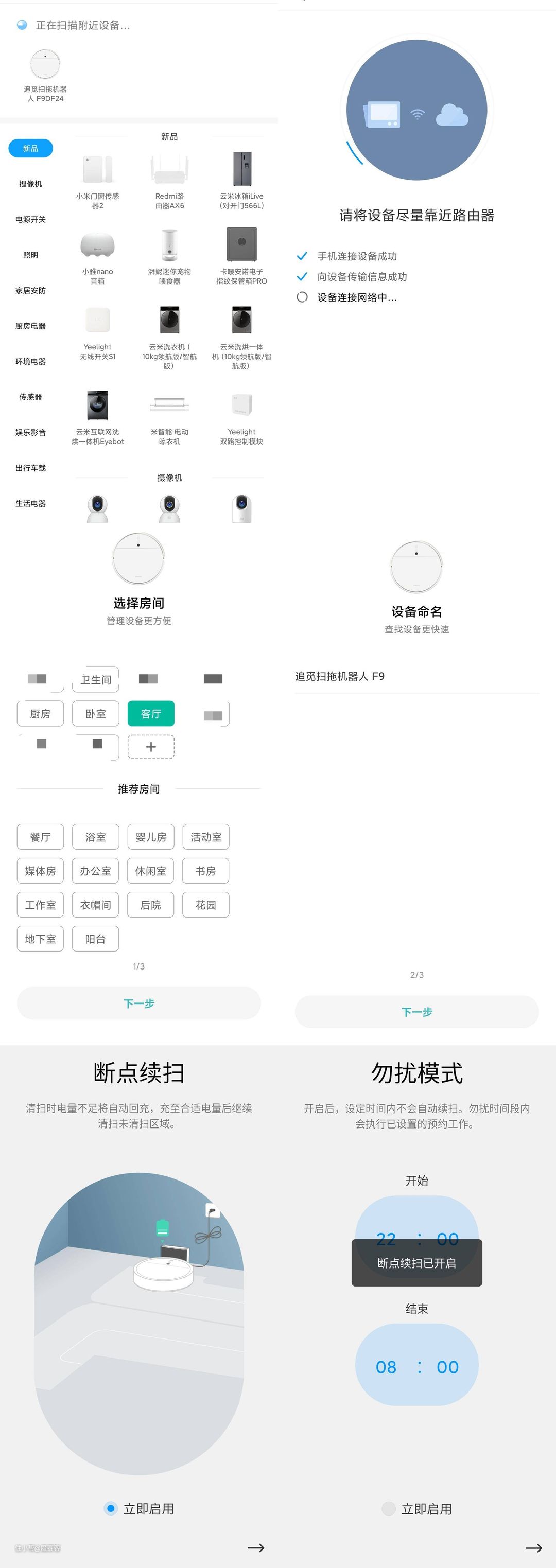 ▲在连接APP过程中,虽然是傻瓜式的,但最好看下提示,比如安放的位置最好周边是有一些空间留出,工作时最好有一些灯光。