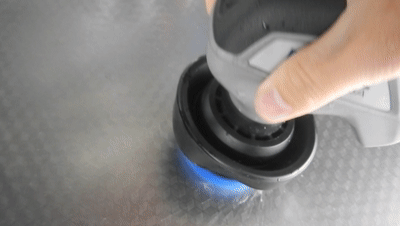 ▲主机顶部为四颗LED灯,工作时可以显示实时电量,打消续航焦虑。由于内置电池容量有2200mAh,满电需5-6小时,续航可达45分钟。