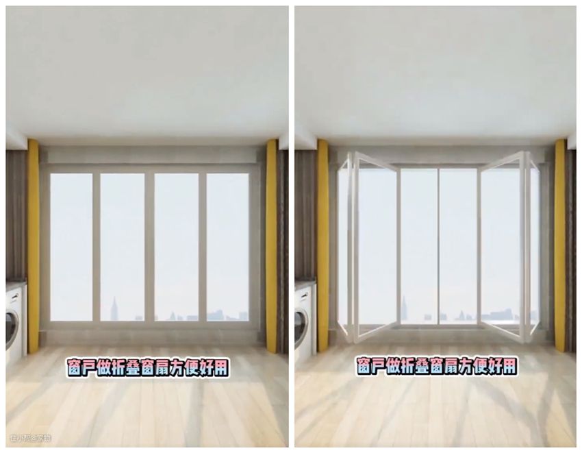 首先,窗户如上图做大扇可折叠设计。