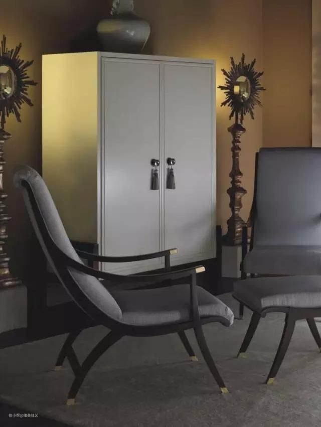 Baker邀请国际顶级设计师进行设计,传统与现代的交织融合让Baker散发出无穷魅力,凝固住黄金时代的华美风华,也带来惊喜不断的奇巧新意。采用中性色搭配,力求简洁时尚的同时,加入金属色的Art Deco家具大大提升了空间的艺术感和线条美。