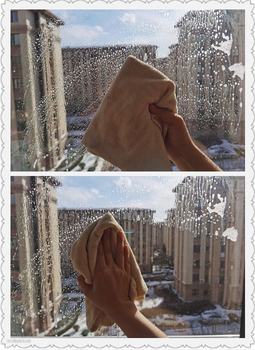 每次擦玻璃,至少准备1条湿抹布、2条干抹布。这个时候就需要家里有足够数量的抹布屯着,不管是旧衣服还是破了的布,只要吸水,用的顺手,统统留着擦玻璃用。媳妇现在偶尔擦点小块玻璃,还是会干、湿轮着用。