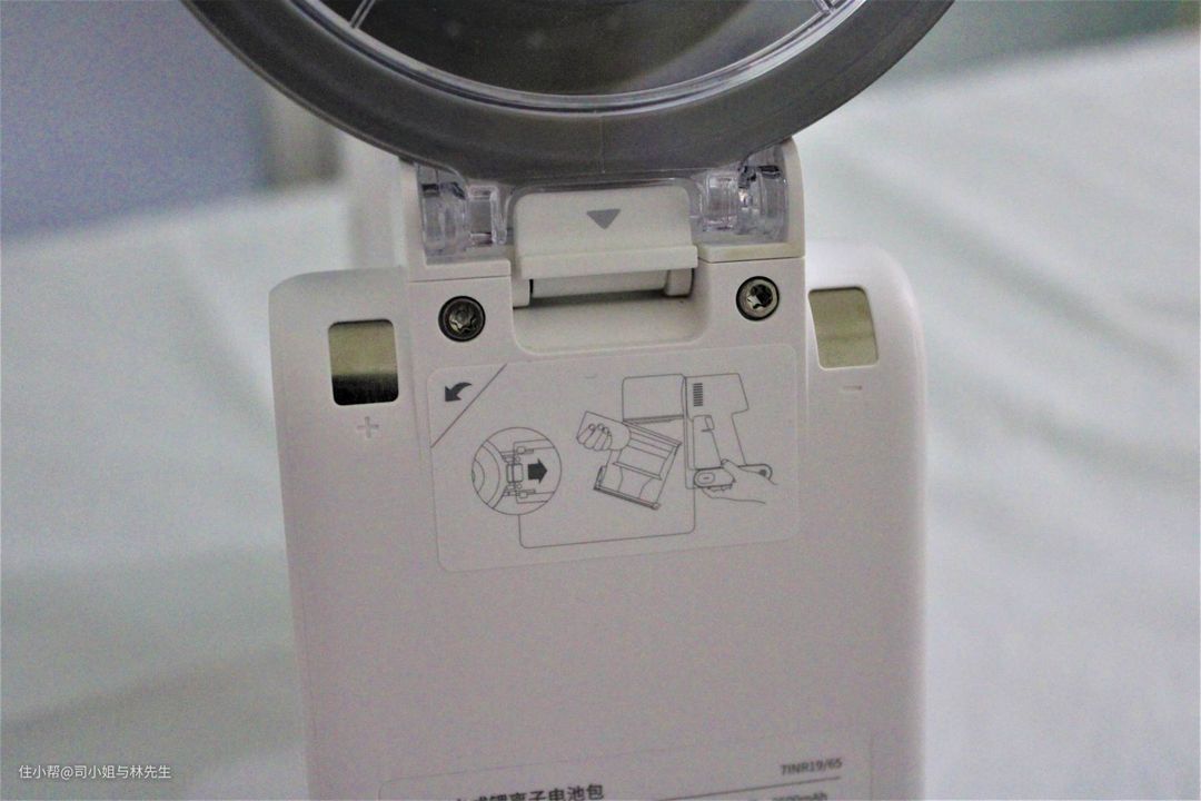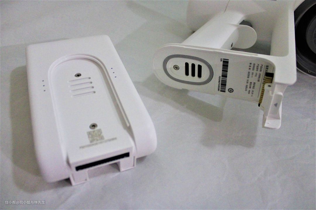 ▲手柄底部是可拆卸的充电锂电池组,2500mAh的电池容量最高可续航60min。如果切换到强劲模式,可续航28min,切换到超强模式则续航时间是8min。时间上来看,最大吸力的续航时间有点短,但使用下来标准吸力即可满足家里大部分的除尘需求。