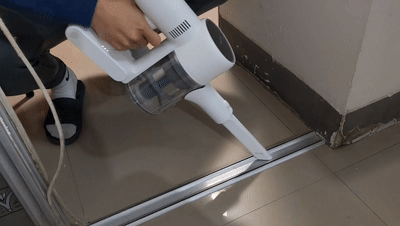 ▲换上缝隙吸头,清洁拉门缝的灰尘,除尘效果很明显。