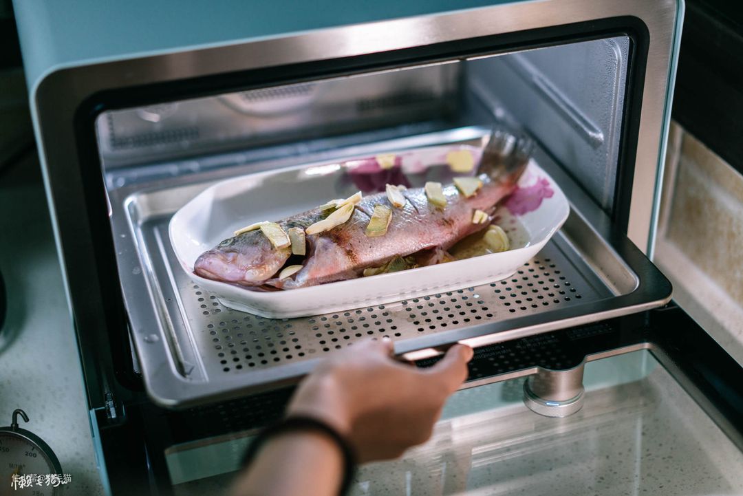 原有的小蒸锅非常尴尬,是没有办法蒸一条完整的鱼的(锅太小了),蒸烤箱就非常完美~~~