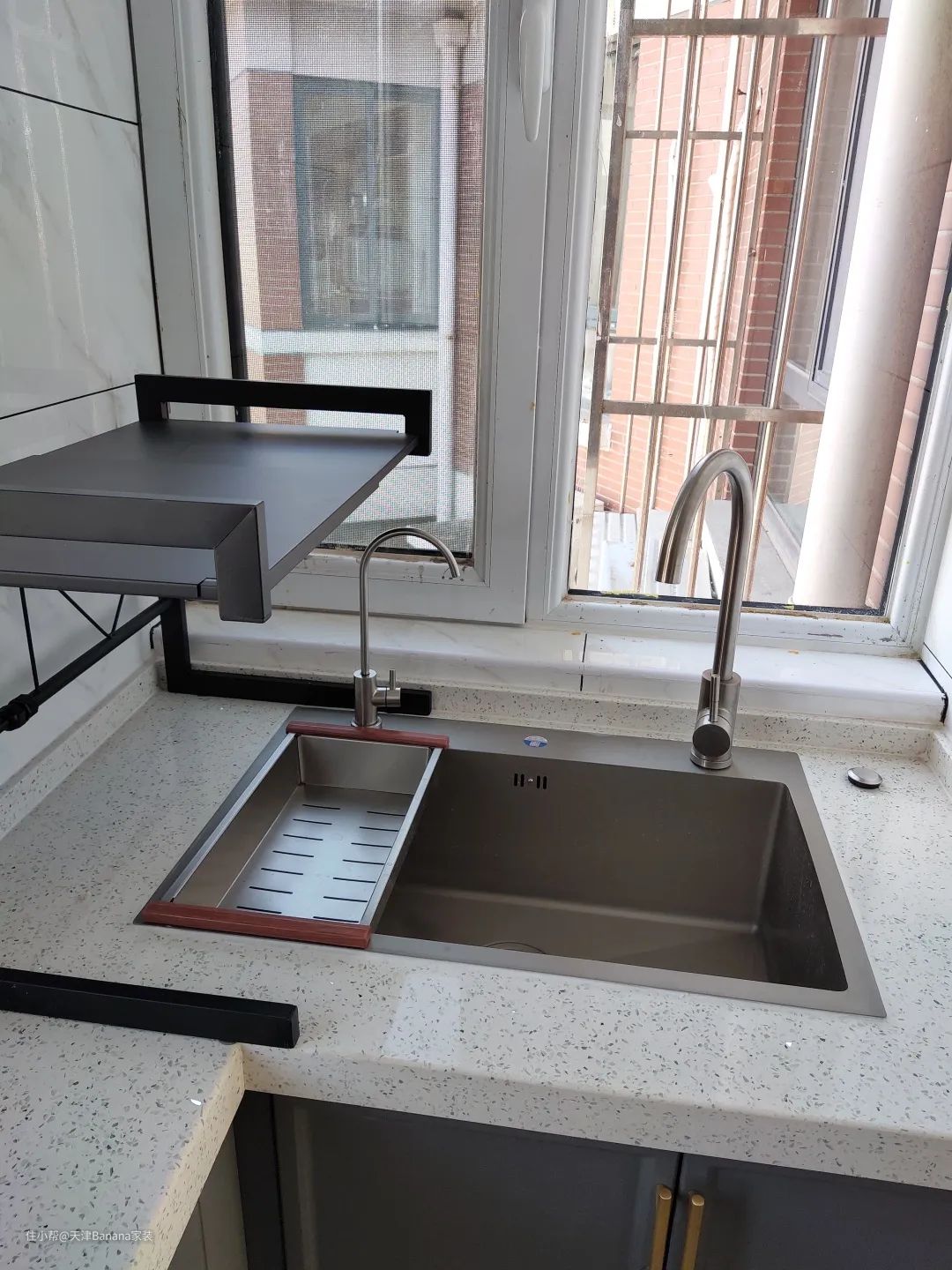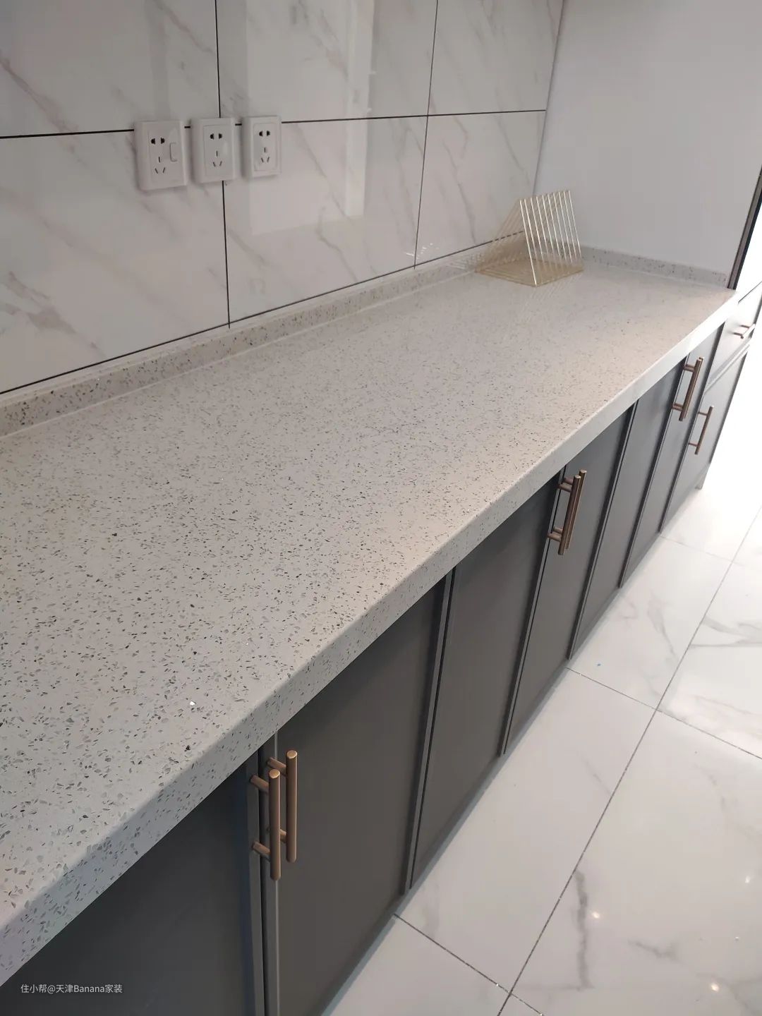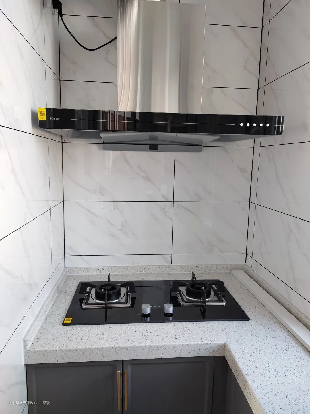 我们使用的E0级环保橱柜,搭配白色石英石面板,厨房干净整洁,又便于清理台面。