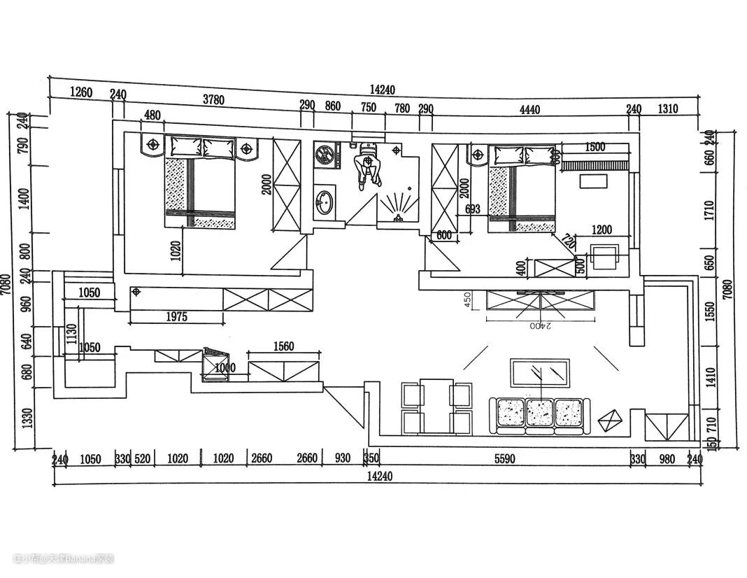建筑面积:85.04㎡ 两室一厅一厨一卫