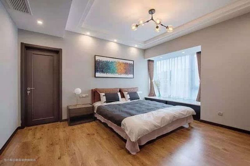 主卧室素雅干净,木地板减少了冰冷质感,长长的飘窗作为休闲区,冬天睡觉前脱下的厚外套,也可以放在飘窗上。