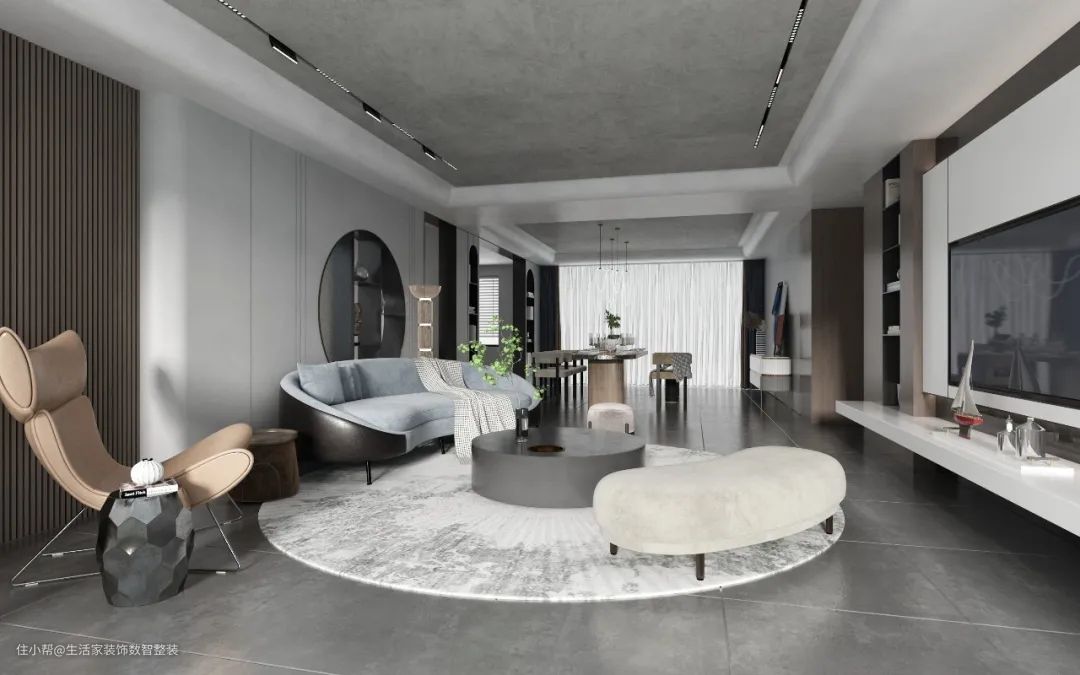 侘寂风在一定程度上遵循着解构主义的设计原则,用分解的概念,将部件进行叠加、重组,对整体呈现出一种分散却又统一的不确定感。侘寂风的设计中弱化了空间中的线面穿插感,为了使空间视觉上更加柔和纯粹,曲线和曲面的运用非常广泛,将各种角度的曲面重组叠加,呈现出优雅的弧度,就是侘寂设计在结构中所需要注意的地方。