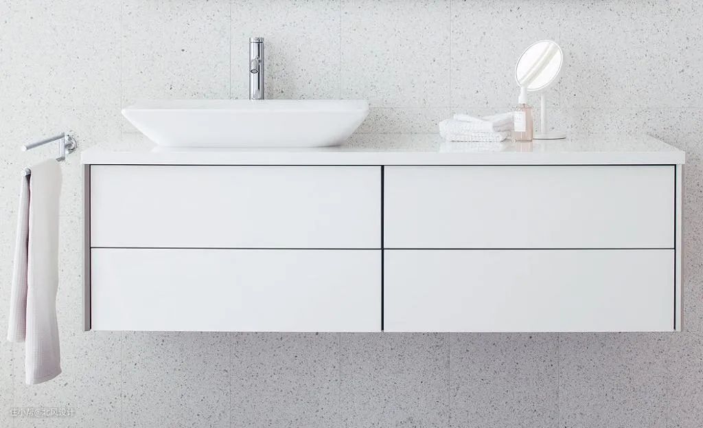 卫生间内更要注重产品的功能完善,浴室柜的抽屉内部可以配备完善的收纳系统,设计点触开关使产品的开合使用更加便捷。