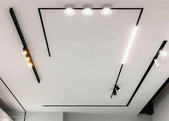预埋嵌入式(吊顶未完成) 在吊顶封板前将轨道预设安装好,然后与吊顶一起封板进行基层处理,这样就会呈现一条细长的轨道造型,造型简单。
