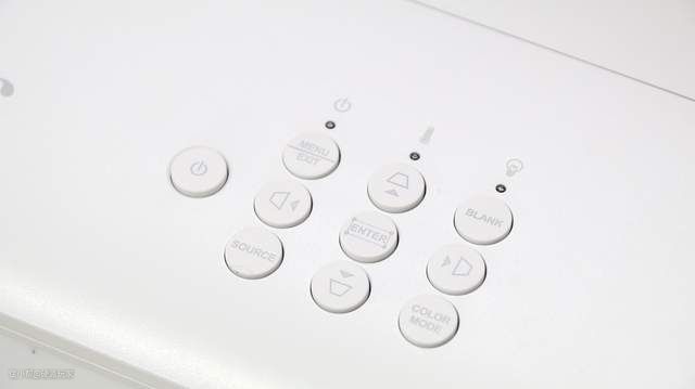 机器的顶盖部分采用九宫格设计了一共十个实体按键,在遥控器遗失的情况下,可以使用这些按键来控制投影仪。