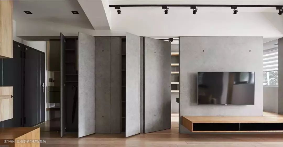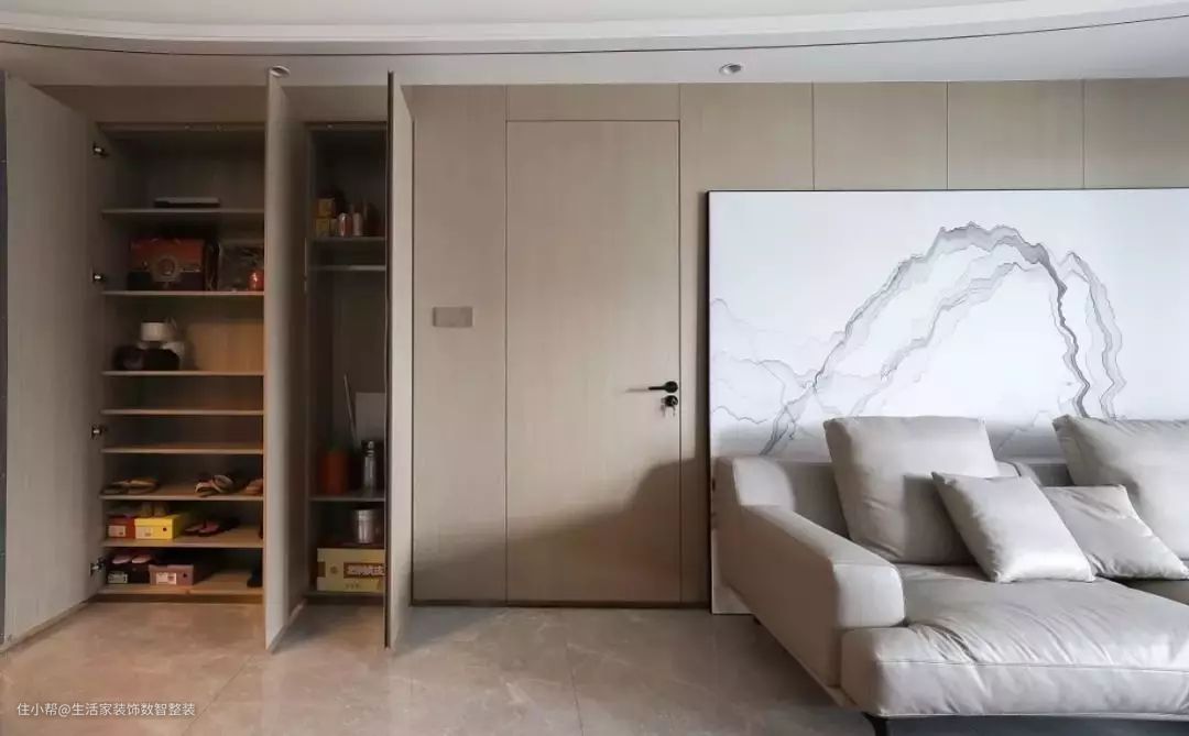如果需要保持整个空间的统一效果,我们还可以采取对称式隐形门、呼应式隐形门、一扇隐形门+一堵轻体墙,或一件家具的方式,来协调空间的整体造型,让隐形门也成为一件装饰物,营造惊艳的视觉效果。
