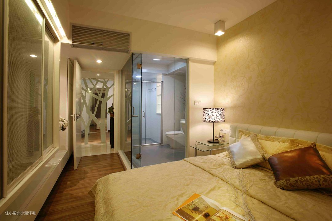 这一点是卧室卫生间常用的方法——把卫生间与卧室相连的墙面全部打掉,或者打掉一半,换成玻璃墙,就像酒店里一样。这样一来,卫生间里就可以借卧室的光,得到来自于卧室的光源。
