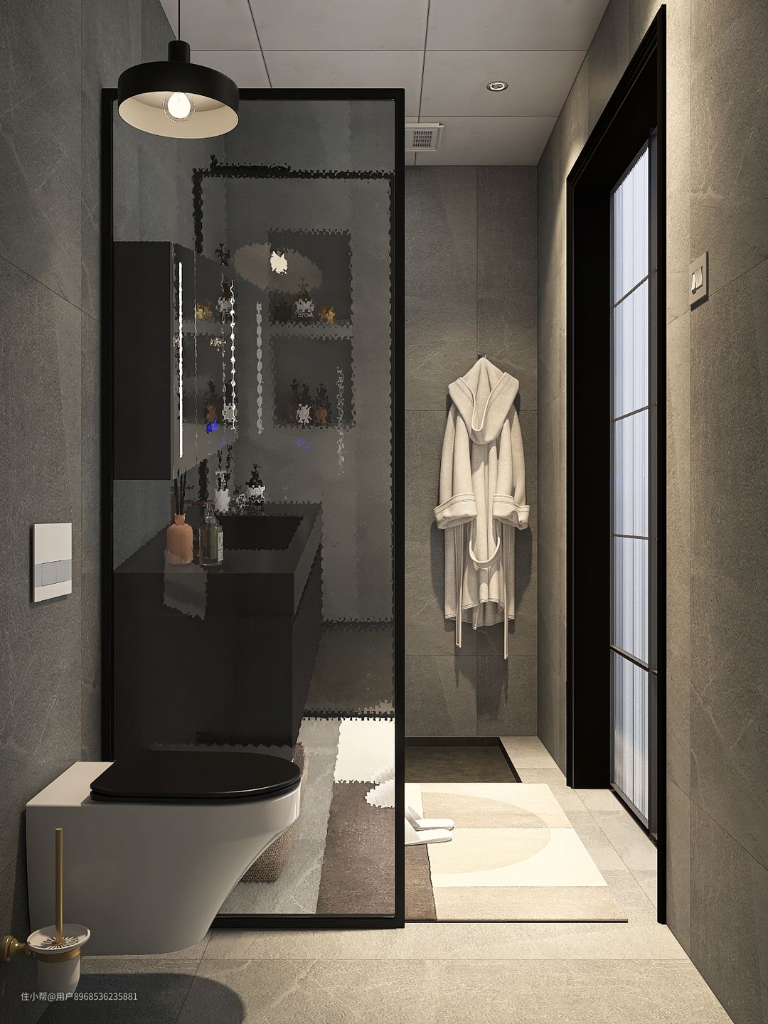 4㎡卫生间也能做干湿三分离,黑白灰的高级感