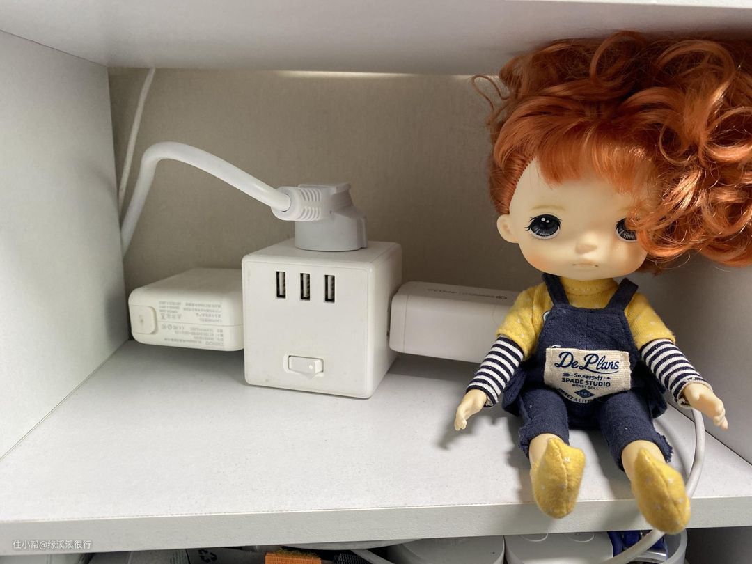 特别喜欢这个米家魔方插座,隐藏在书架里面,但是却肩负着书房桌面电器供电重任。