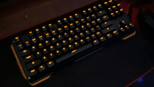▲贱驴一贯的黄色LED背光灯在夜色中非常闪亮。而且背光系统丰富,你完全可以按照自己喜好选择常亮、呼吸、涟漪等多种模式。