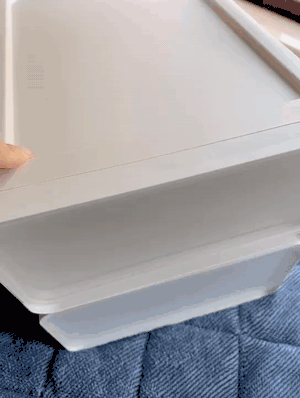 ▲这款全格收纳抽屉柜的小细节做的很好,比如叠放的时候,表面的卡槽会保证柜子不会随着抽屉拉出的时候移动。