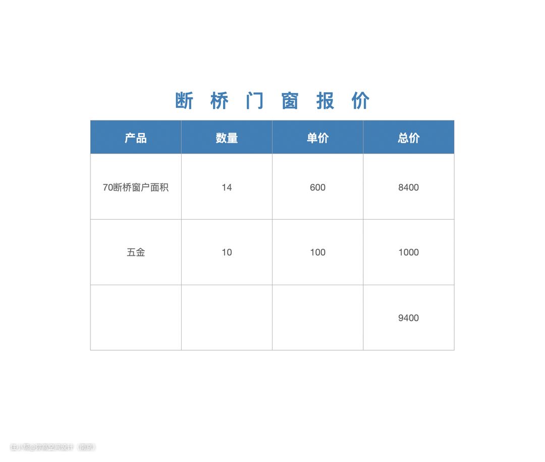 以一户100平房屋为例,一般而言,窗户面积是在14个平方左右。包含了三个卧室的窗户,两个客餐厅窗户,一个厨房窗户,一个卫生间窗户和一个阳台窗户。如果全部更换成普通的70型材的断桥窗户,预算一般是在9000元左右。如果换成好一点的108型材,再加上进口五金件的话,一般价格会在13000元左右。