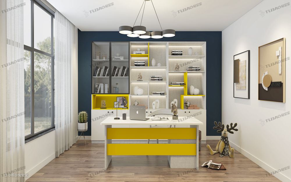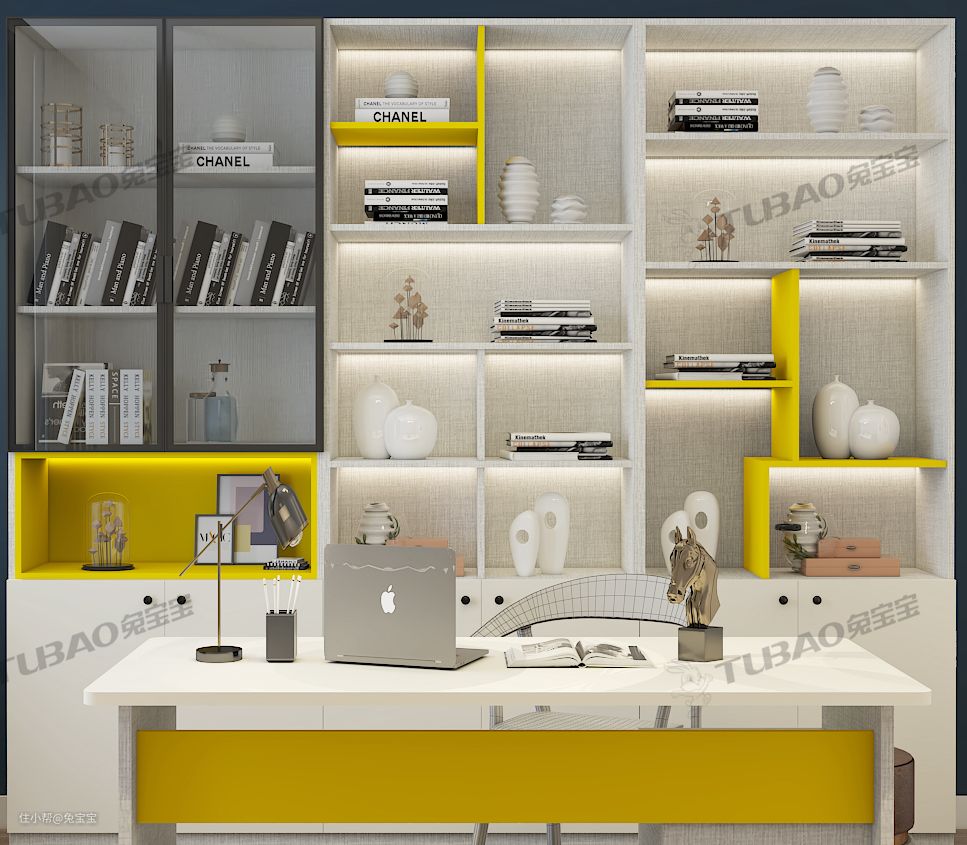 黄色是整个书柜的点睛之笔,