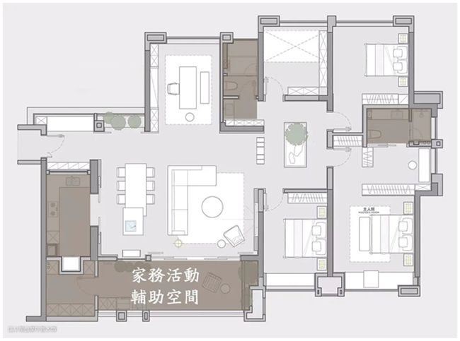 分为几个大类:起居会客、烹饪就餐、睡眠休息、