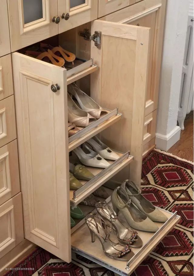 摆放时,可将男女鞋分层放置,例如低跟的平底鞋或童鞋可放在12厘米高的那层,高跟鞋则放在18厘米高的那层,一般便鞋则放在15厘米高的那层,这样的弹性运用能提升鞋柜的使用效能。