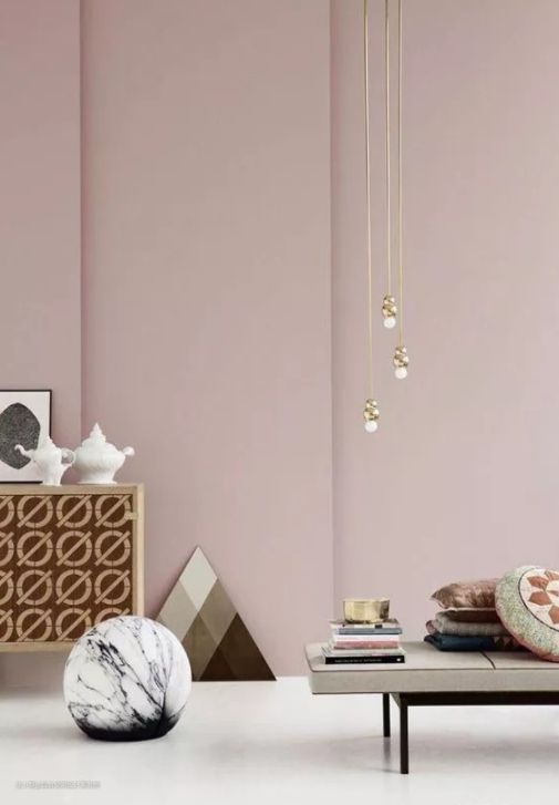1、烟灰粉--所有女生都爱粉色,无论哪个年龄段,这种代表着少女感的颜色依然不会过时。烟粉色不似浅粉色那种稚气未脱的娇柔感,也没有春夏分红那种高调引人注目的视觉感,而是更具柔和清淡的亲和力。适合女性的家居装饰配色之一,即使大面积填充也不会显得庸俗。