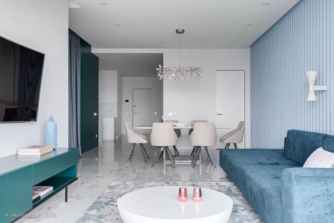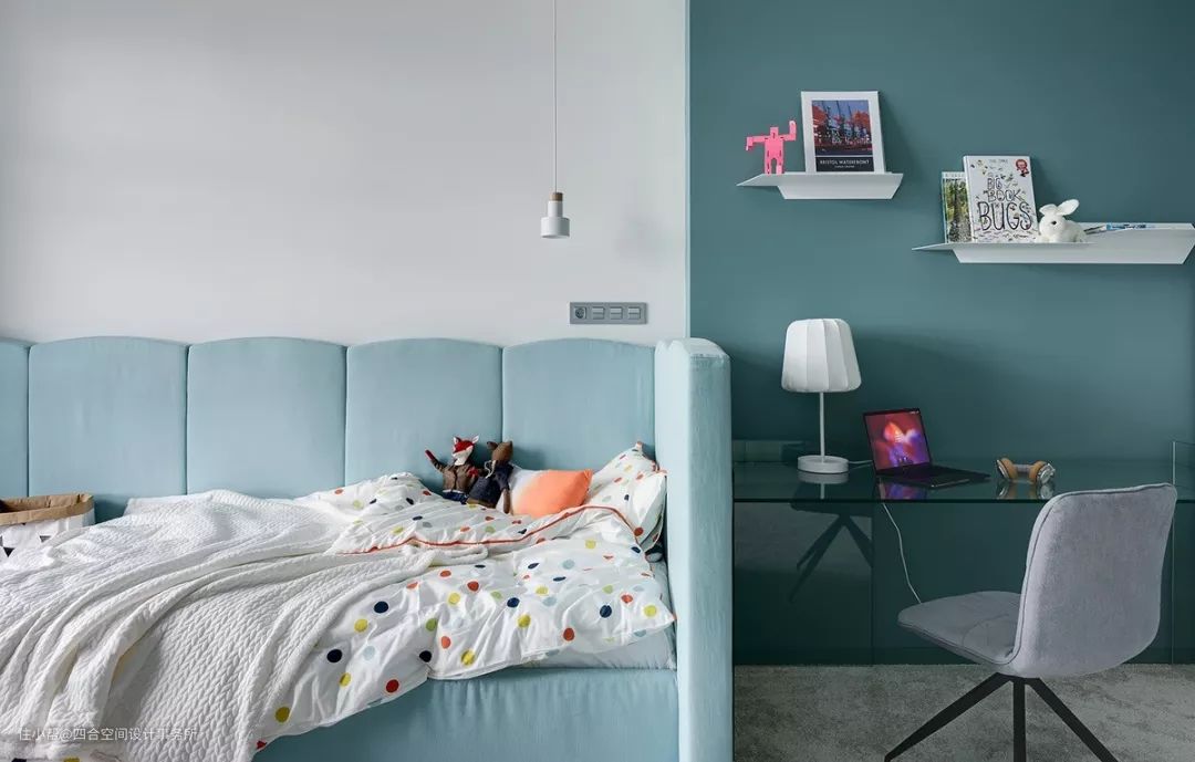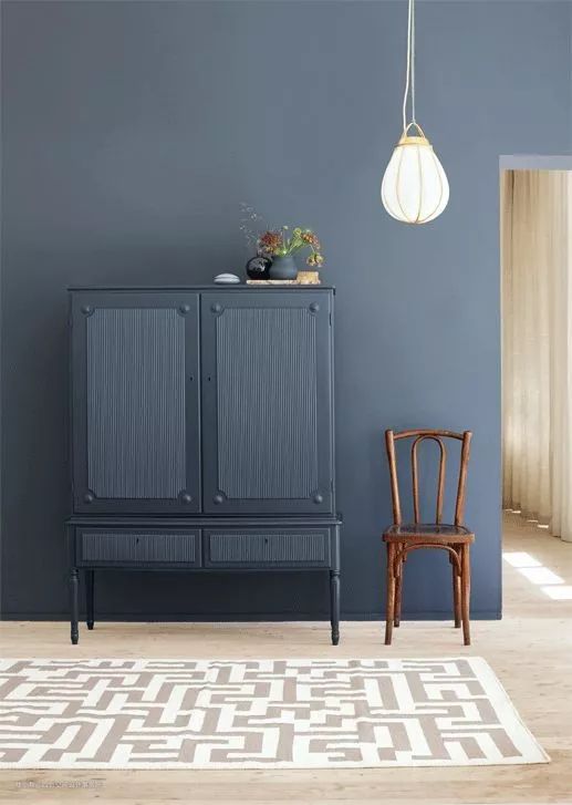 3、雾霾蓝--别被名字所困扰,这并不是哪些危害我们身体健康的“雾霾”,而是让我们透过霾,去发现空气中的色彩。深蓝色总能人感到忧郁或是淡淡的压抑,而雾霾蓝给人的感受,却更多的是干练,成熟,就像一位不失优雅的轻熟女性,饱有诗书气自华。而将这种颜色用于家居配色,仿佛置身于静怡的湖岸边,每一次的呼吸都会变得更加舒缓和安静。