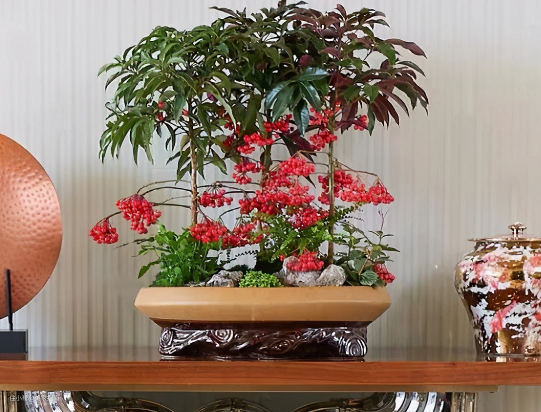 一些热爱制作盆景的人,会经常去农村乡下找“宝贝”。而这“宝贝”,除了上面的红凉伞和九死还魂草之外,还有“金弹子”。上图这些乌黑的枝干,其实就是金弹子。造型曲折、枝干苍劲,金弹子对于盆景大师来说,是非常优秀的盆景材料。它不仅枝干有艺术价值,而且它还结果。金弹子的果实随着成熟期的接近由绿渐变黄至橙红色,可以说观赏价值极高,不输给任何一种观果植物。