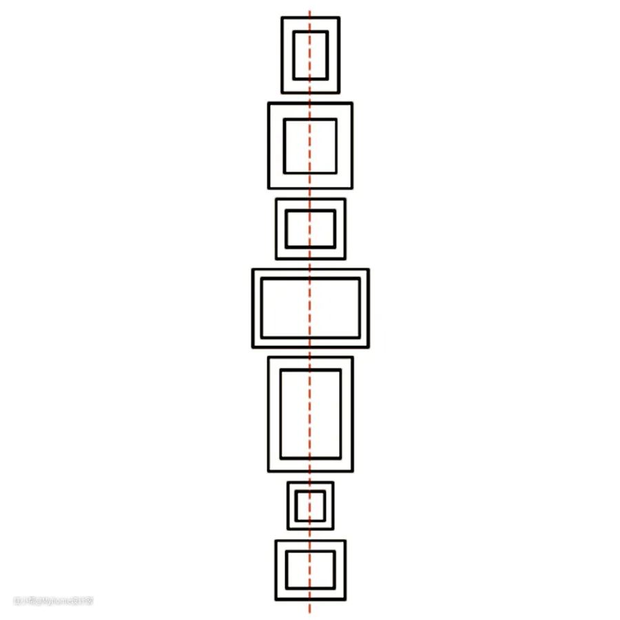 掌握悬挂装饰画的基本原则之后,操作上就能依据不同数量、场景,进行组合变化;常见挂法有以下6种。