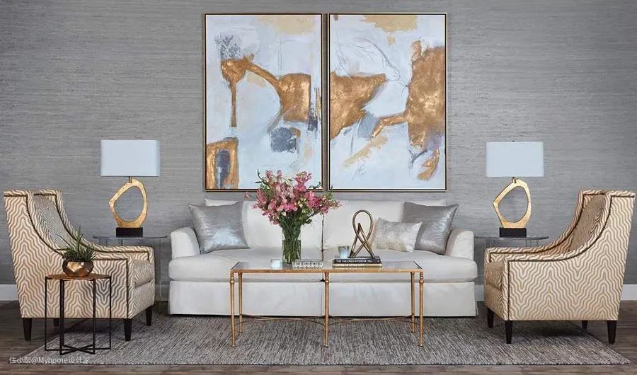 如果这组装饰画是属于双幅、三幅、多幅的组合,那么每幅之间的距离,应维持5至12厘米。常规上,画作的尺寸越大,间距就该越大;若是尺寸小、数量多,间距就该越近。