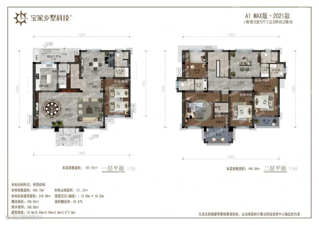 在标准版之上,增设子女和顶层星空套房,合计四大套房|增设15平影音室|一二楼均设活动厅