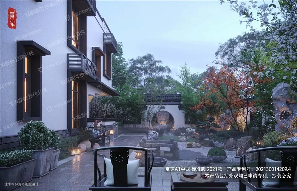 1、禅意中式风,适配乡村风貌,多层次勾勒出美的新高度。