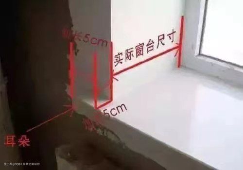 窗台耳朵,铺贴窗台超出墙壁3厘米,两边长度也多出3厘米左右,这样做是看上去更好看,也能处理好墙壁和窗台石收边。但是耳朵其实也是根据个人喜好来选择,如果窗户两边要做柜子也要和商家沟通耳朵长度。