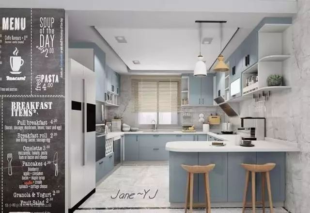 台面上需要的是电饭煲、微波炉,甚至还会有热水壶、压力锅、破壁机等小家电,所以台面上至少要留出一米的宽度给家电,对应的墙面上也要有足够的插座(3-5个插座)。