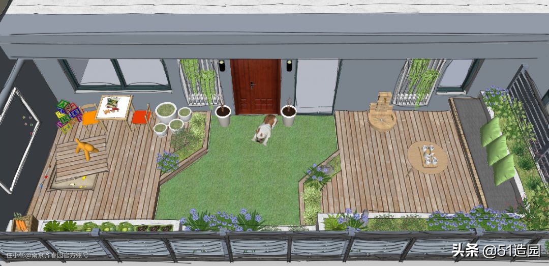 业主家里有两个可爱的宝宝,希望未来这个露台花园能给她们提供一个良好的活动空间,阅读,聚会,游戏玩耍,种植,采摘......