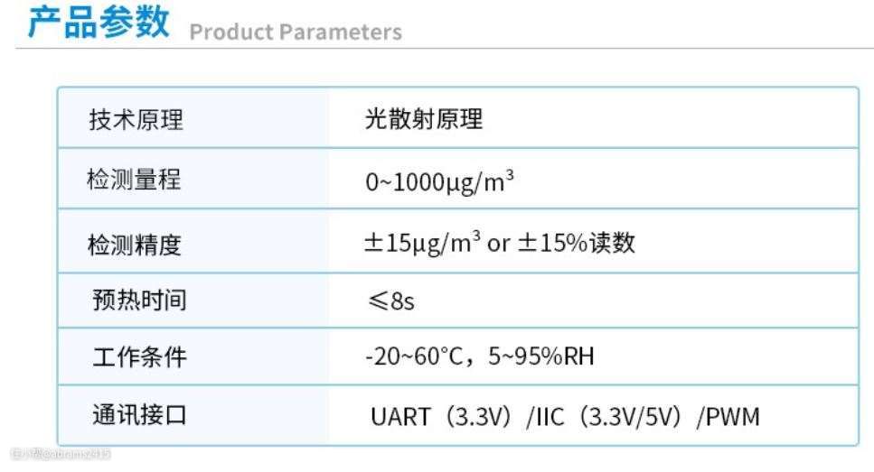 ▲舒乐氏空气净化器带的激光传感器和家里DIY自制的空气质量仪对比。品牌四方光电,从四方光电产品列表找到这款激光传感器的具体参数。我来看看它们精度如何