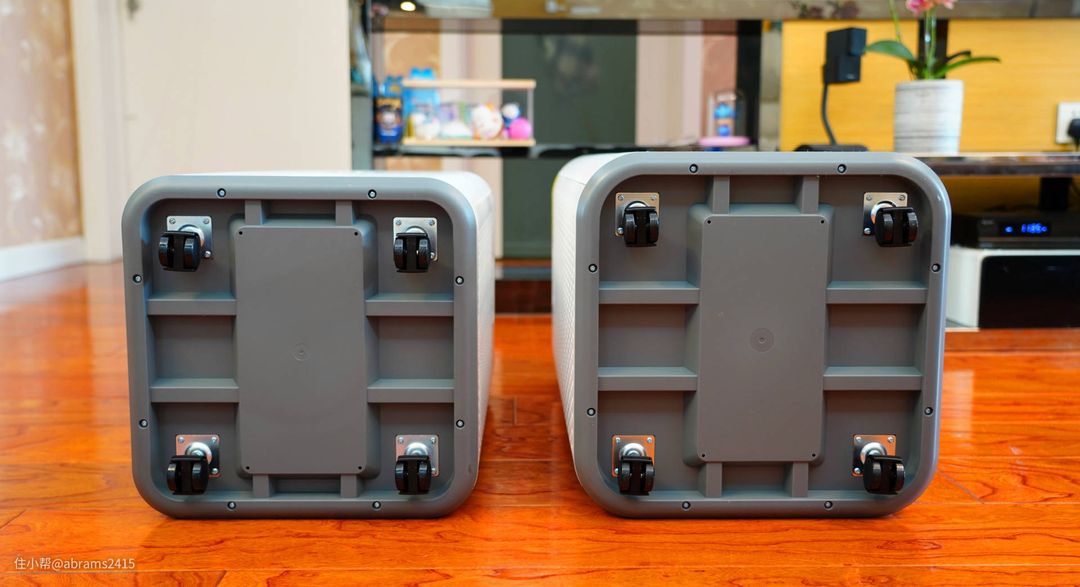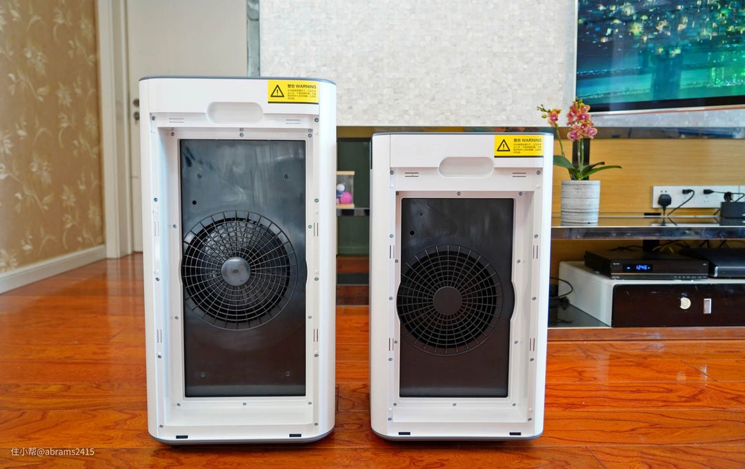 ▲两款净化器底部都自带橡胶滚轮,方便在屋内不伤地板移动