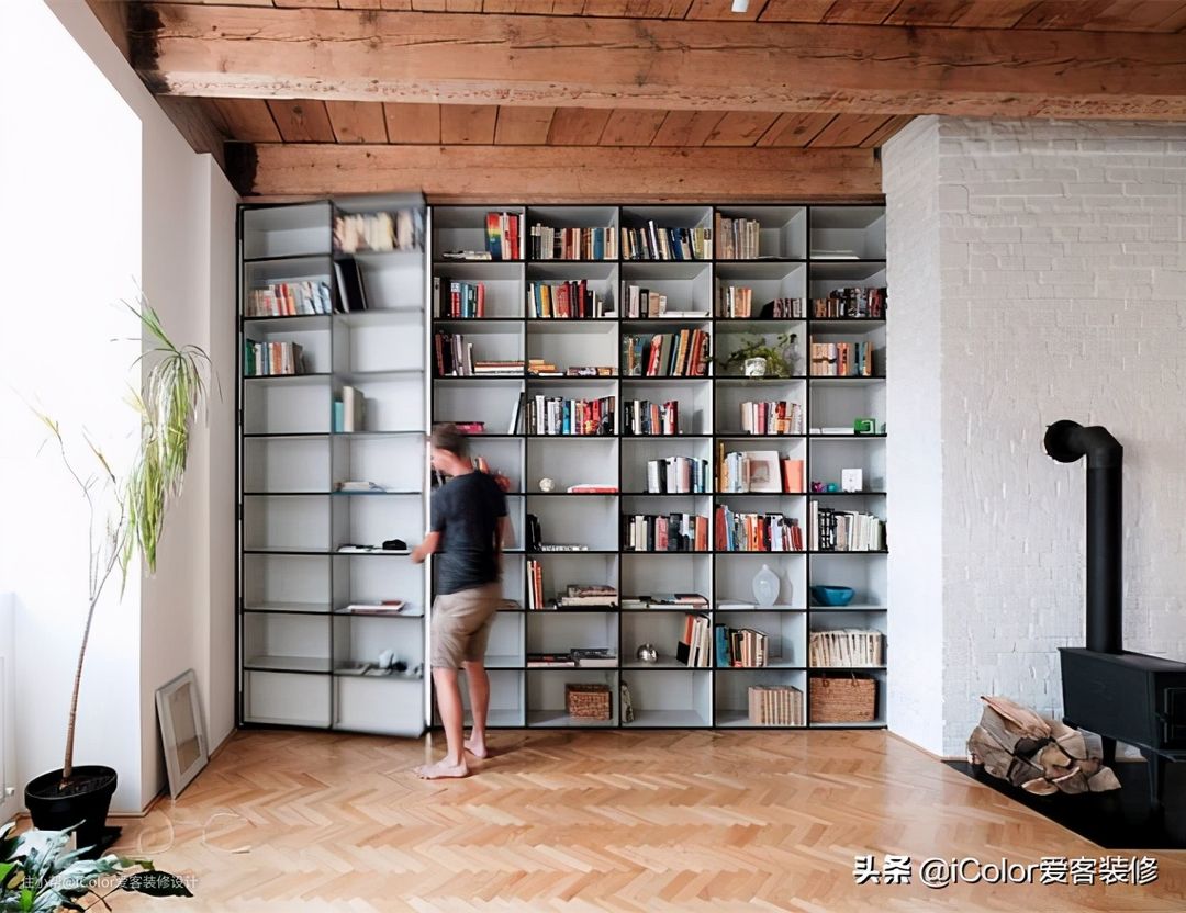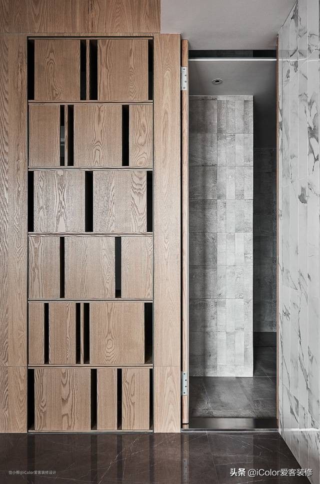 衣帽间、书架、展示柜,是隐藏门最容易出现的地方,在这里设置隐藏门,不仅赋予了门远门不具有的收纳功能,更让门隐藏在其后,视觉效果也是满分。