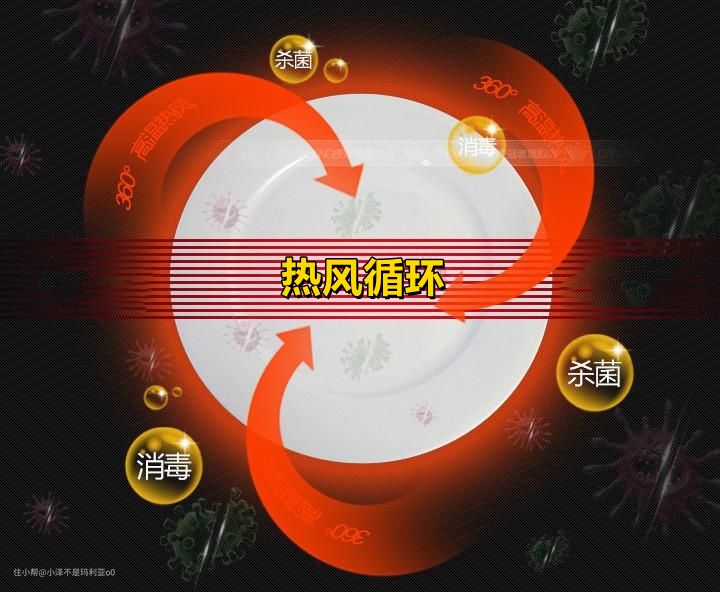 PTC热风循环烘干:这种烘干方式通过机身内部的离心机将PTC加热器产生的热量吹到箱体内,形成一个热风循环,这种方式比上面石英管加热的烘干效果更加均匀,常被用于中端消毒柜。