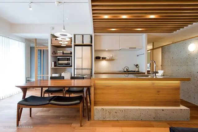 这种空间布局方法,由日式住宅设计开创,现在也有一个专业的名词,叫做“LDK格局”,其实就是客厅、餐厅、厨房的英文首字母组成。