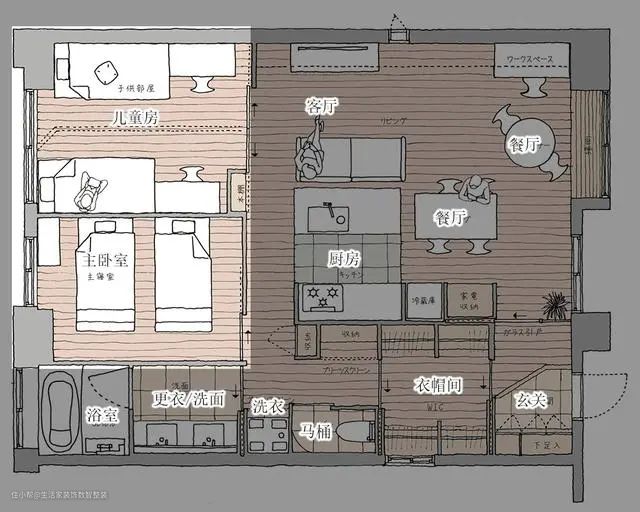 今日案例,要给大家分享的是一套坐标日本东京74㎡四口之家的住宅装修案例,可以说日本住宅的智慧,全藏在这套房子里了,有“环绕式”过道,弱化客厅格局,“三分离”卫浴……等等超多细节值得参观。看似朴实,实则全屋用到了大量环保温润的纯实木材料,让人感受到温暖、安静、自然,住起来真的超舒服!