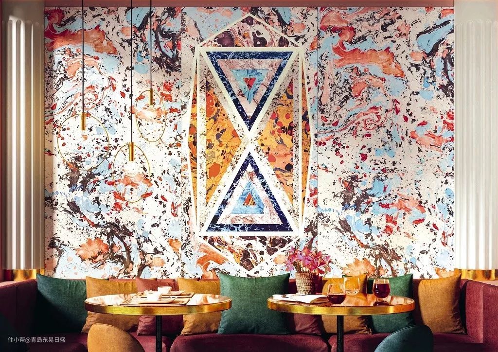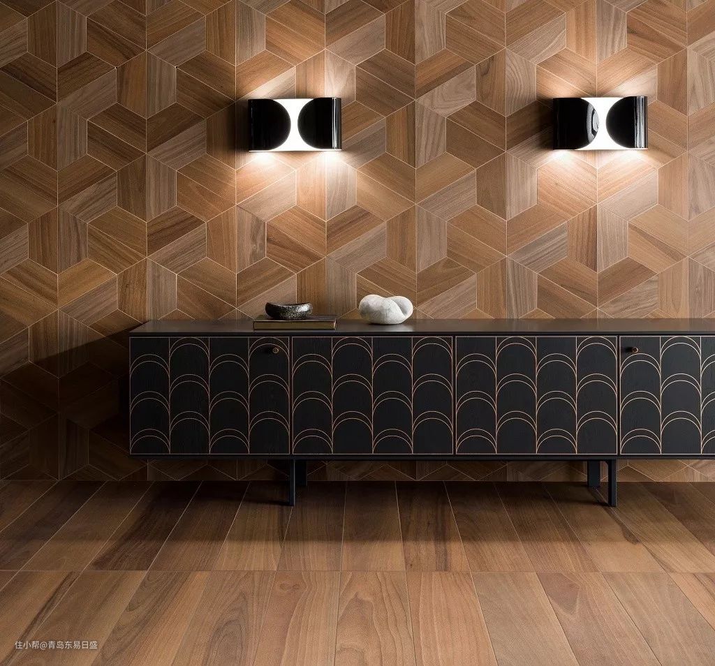 木制马赛克风格的瓷砖在橱柜制造商的艺术影响下兴起。具有仿大理石和嵌花的陶瓷涂料在地板和墙壁上同样出色。无论是在私人室内还是公共室内,它们都为该项目增添了复古感。